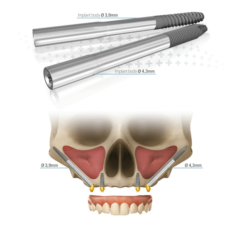 Ezek az implantátumok nem kizárólag az állcsontra támaszkodnak, hanem a koponyaalapnál található erős csontterületbe, az úgynevezett pterygoid lemezbe rögzülnek.