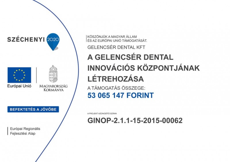 A projekt tartalmának bemutatása: A támogatás tárgya a A Gelencsér Dentál innovációs központjának létrehozása című és GINOP-2.1.1-15-2015-00062 azonosító számú, a támogatási kérelemben és annak mellékleteiben rögzített projekt elszámolható költségeinek az Európai Regionális Fejlesztési Alapból és hazai központi költségvetési előirányzatból vissza nem térítendő támogatás formájában történő finanszírozása.