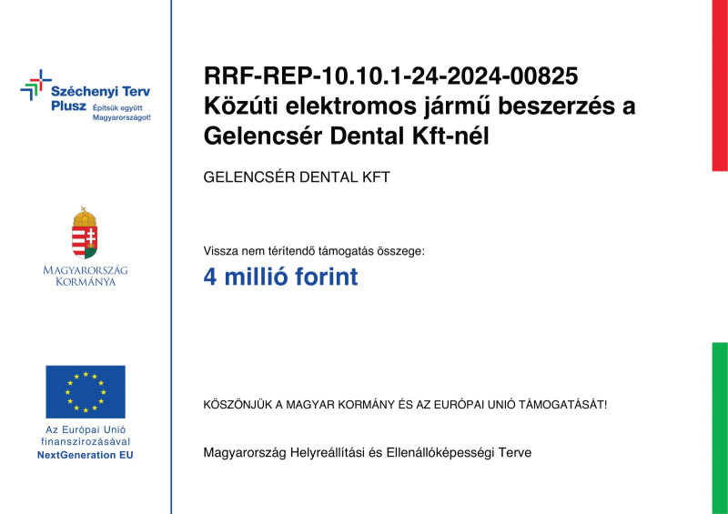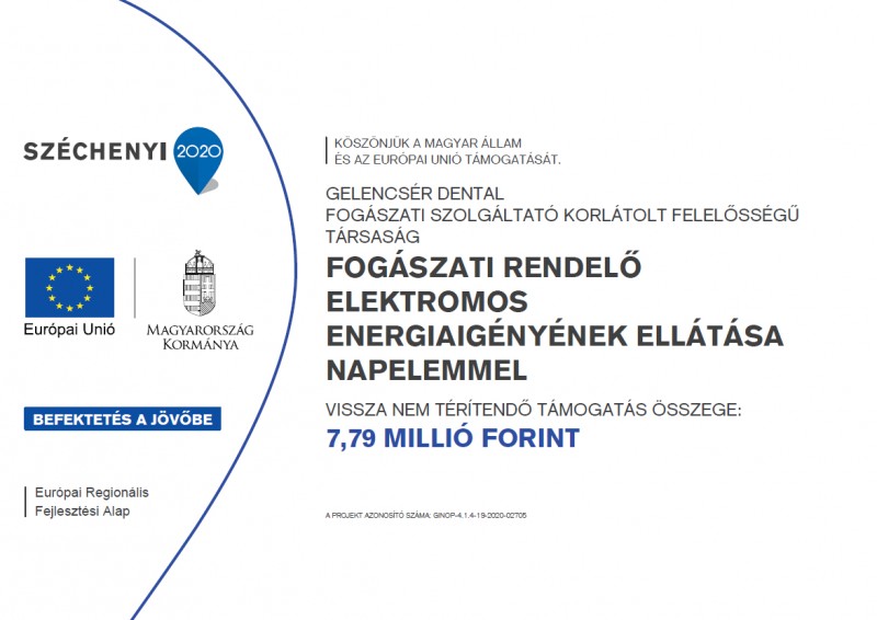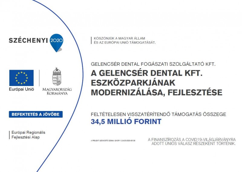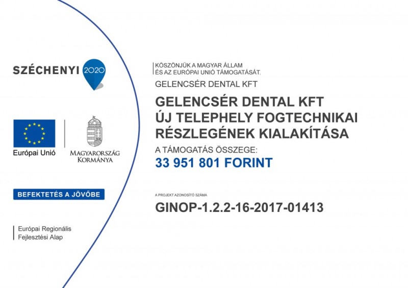 A projekt címe: „A Gelencsér Dentál Kft. eszközparkjának modernizálása, fejlesztése”